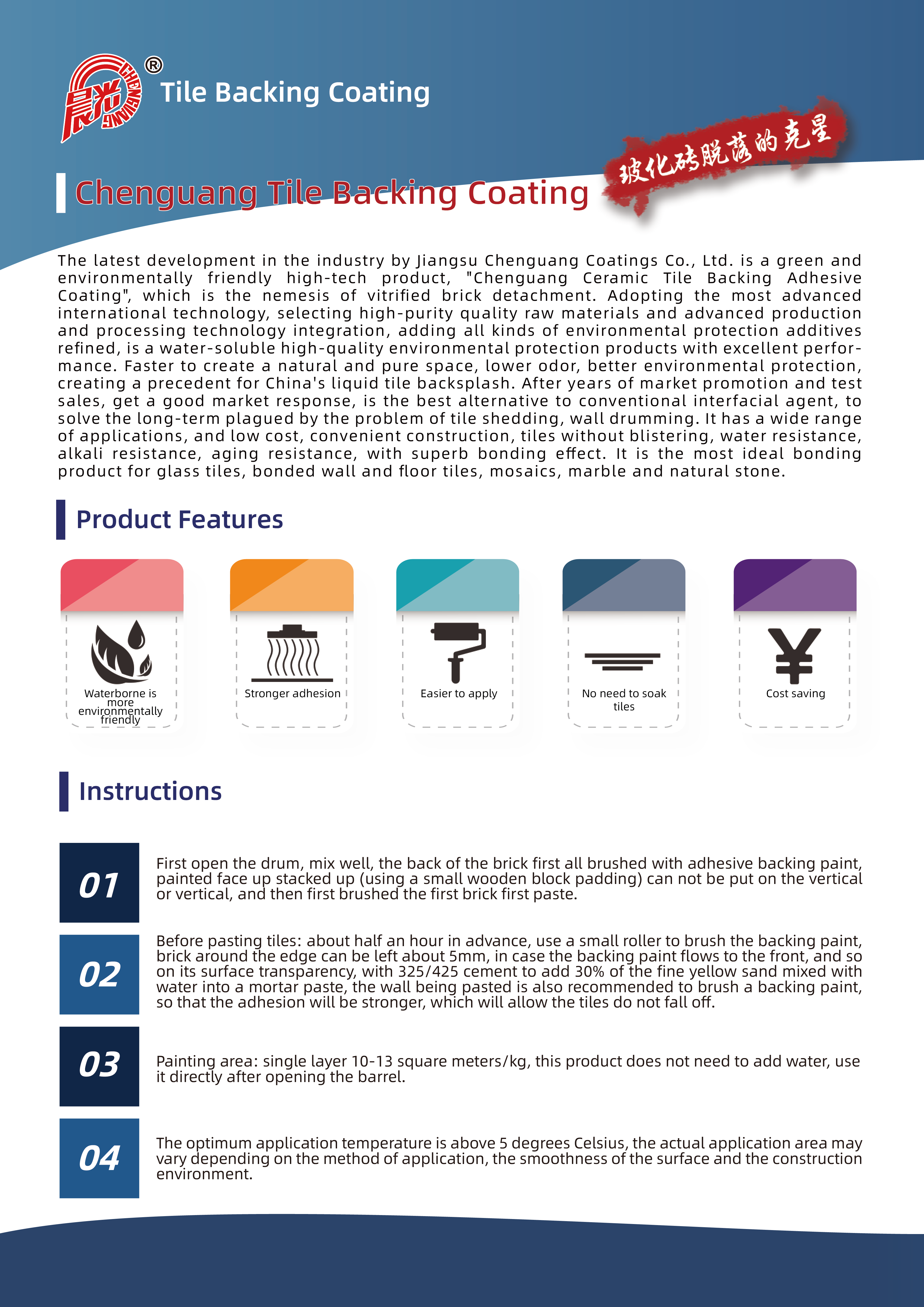 ★水性更环保 ★更强附着力 ★施工更便捷 ★瓷砖无需水泡 ★节约成本