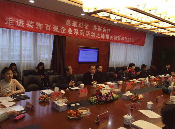 临近春节,团拜会氛围一派欢乐祥和,现场布置也让人感受到了浓浓的节日气息,随着2016年猴年春节的临近,在即将辞旧迎新的时刻,本场团拜会也显得分外喜气洋洋,参会人士以轻松自在的心态,各抒已见,既有妙语连珠的新年贺辞,又不乏对即将过去一年的深入总结,当然对2016年的整体年度展望也成为现场参会人士畅谈的热点话题。 大家通过探讨与交流,回顾2015年一路走来的发展路程,在总结与反思中,以新春团拜会为契机,积极寻找新的一年的起点,现场到会人员作为装饰百强企业人员,互相借鉴交流,发言也都有自己独到的见解。