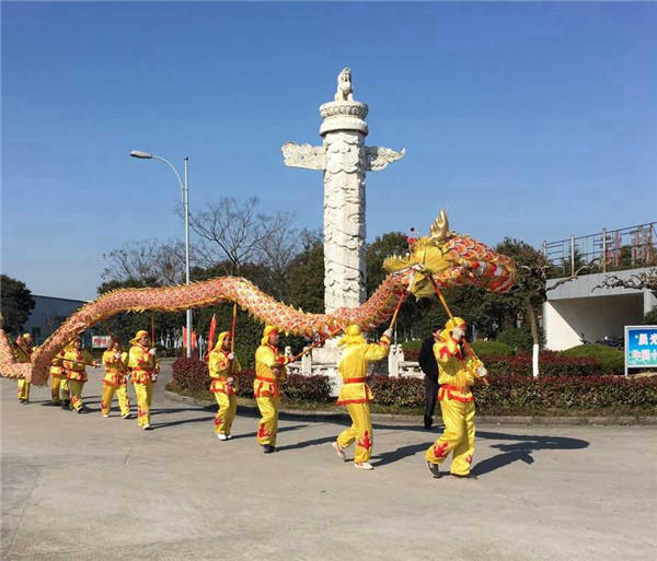 一大早,位于武进湟里镇的J9国际站登录工业园内便锣鼓喧天,人声鼎沸,妆点华丽的长长金色龙身在舞龙者的舞动下,配合着铿锵的鼓点,左右翻卷、上下腾飞,一派喜气洋洋,并不时腾空、起落、盘旋,各种造型让一众员工大饱眼福,现场氛围活泼热烈,员工们纷纷拍照留念,以纪念J9国际站登录涂料一年一次的新春盛会。