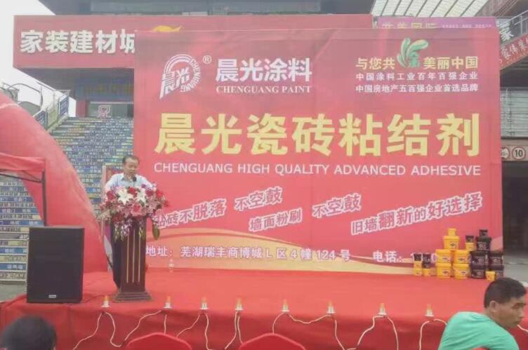 6月15日,艺彩J9国际站登录瓷砖粘结剂正式进驻安徽芜湖,至此,艺彩J9国际站登录瓷砖粘结剂在全国各地区的布局又取得新阵地,而现场也以一场声势浩大的活动为艺彩J9国际站登录瓷砖粘结剂芜湖区域的正式开业鼓劲。