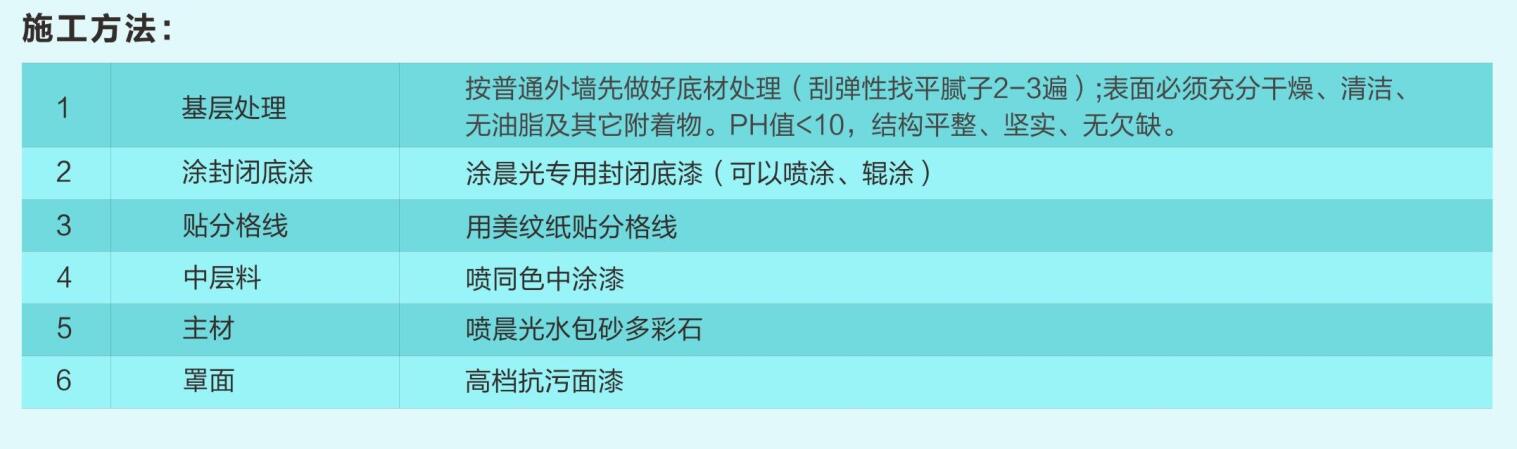 施工范围广,适用于多种基面,耐候性、耐碱性、柔韧性、自洁性、抗紫外线性能极佳,不易褪色,优质原材料的卓越品质能够减少有害气体挥发,在各种气候条件下保护建筑物墙体,为高档建筑物装饰的上选之材。