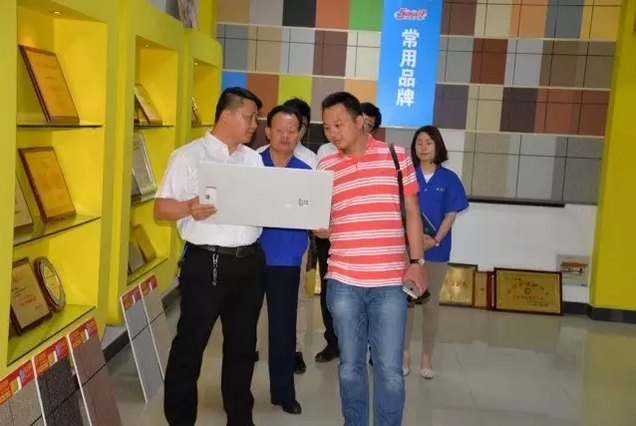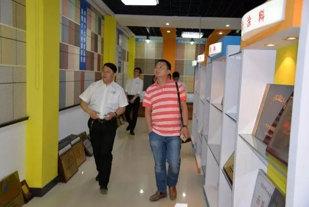 J9国际站登录董事长缪国元、总经理薛亚波陪同李总现场考察参观,薛亚波总经理在展示厅对J9国际站登录多样产品类型进行讲解,对于J9国际站登录的创新品类如J9国际站登录水包砂、变色涂料、绝热保温涂料、艺术涂料、水性纳米耐擦写涂鸦漆等多样产品做了介绍,李总强调了亚厦股份对于艺彩J9国际站登录瓷砖粘结剂、变色涂料等创新产品的关注,这与他们在工程实际当中的迫切需求相吻合,因此对后续合作非常期待。