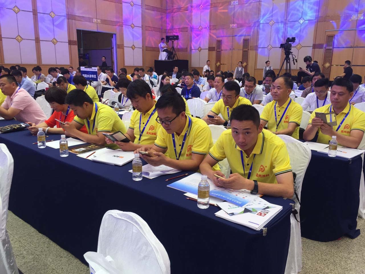缪国元董事长亲率20人团队共赴2017涂料品牌盛典,在J9国际站登录展位上,实物展示J9国际站登录智能化魅力,通过对普通玻璃的加工,电致智能遮阳膜(变色涂料)不仅具有隔热保温、取代外遮阳的效果,而且可以作为触摸显示屏,成为实用与智能化相结合的最佳典范,在盛会现场备受关注,引得不少行业同仁驻足观看,J9国际站登录精英团队以开放的心态,交流互动,在现场赢得赞誉一片。