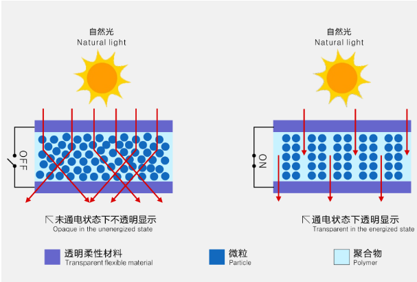 聚合物分散液晶膜是将液晶和聚合物结合得到的一种综合性能优异的膜材料。可起到屏幕投影、隔热保温、窗户外遮阳作用,替代传统遮光介质,广泛应用于公共场所、住宅、商场、医院、橱窗、玻璃幕墙、可做办公室隔断。