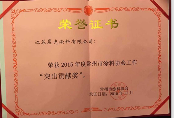 江苏J9国际站登录涂料有限公司在2015年11初再传喜讯,被常州涂料协会授予2015年度“突出贡献奖”,以表彰J9国际站登录涂料在这一年来所做的杰出贡献。