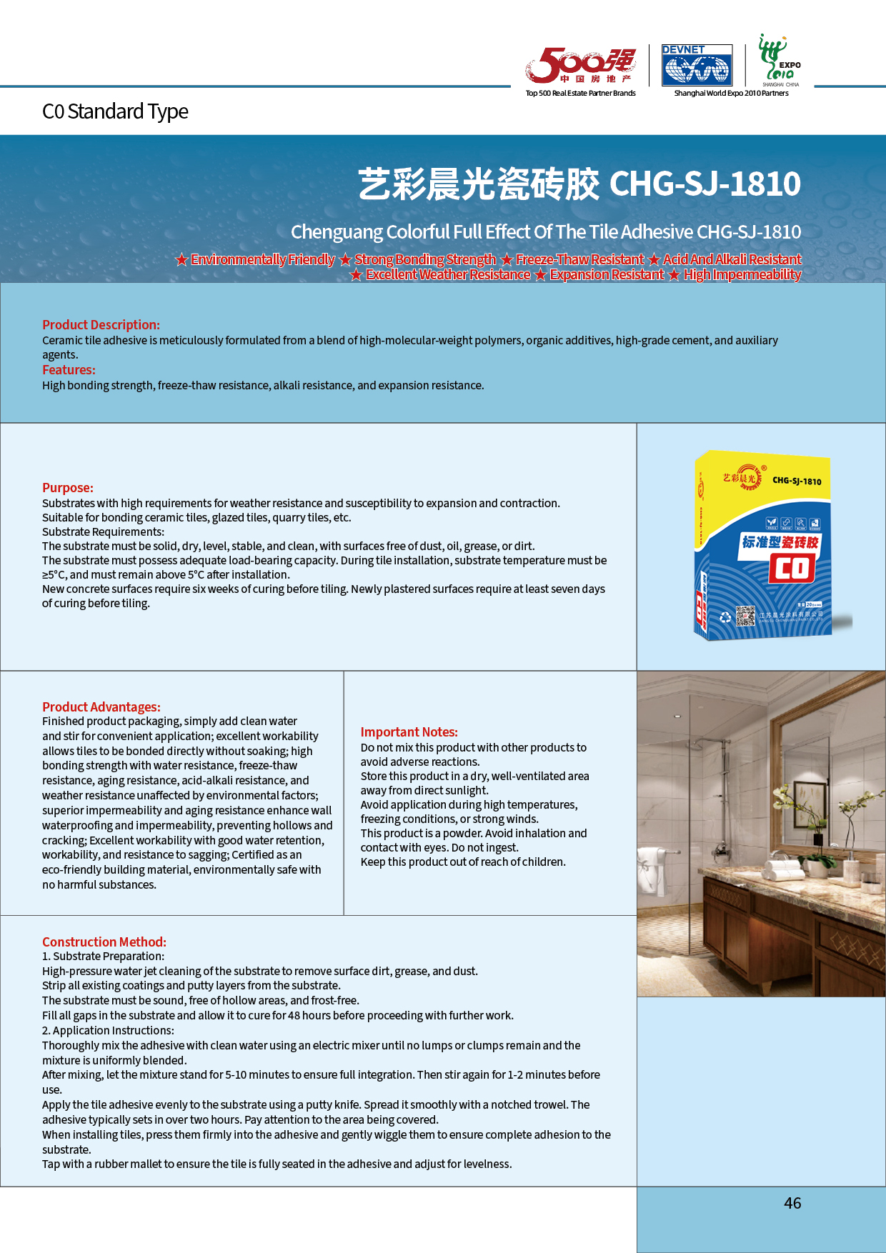★ Environmentally Friendly ★ Strong Adhesion ★ Freeze-thaw Resistance ★ Acid-alkali Resistance ★ Good Weather Resistance ★ Anti-expansion ★ Good Impermeability