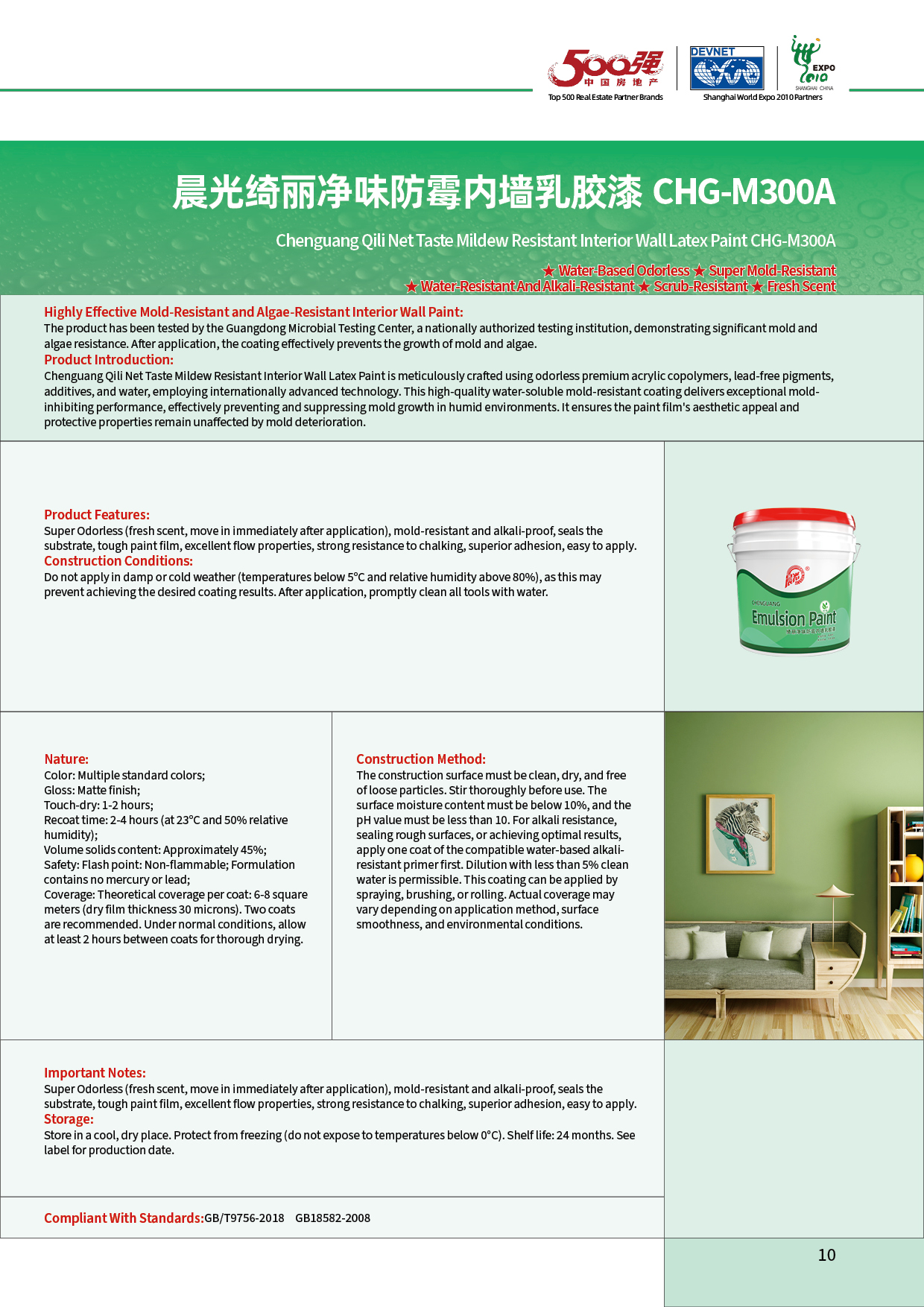 ★ Water-based Low Odor ★ Super Anti-mold ★ Water-resistant and Alkali-resistant ★ Washable ★ Fresh Scent