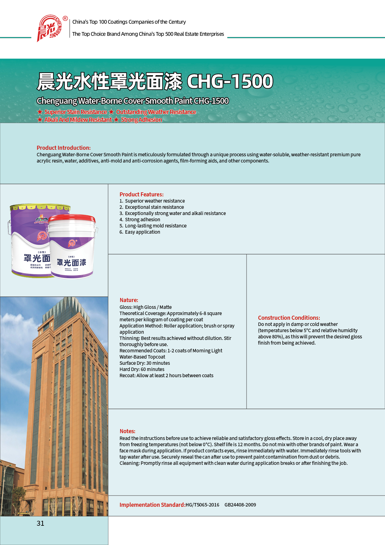 ★Superb stain resistance ★Excellent weather resistance ★Alkali-resistant and anti-mildew ★Strong adhesion